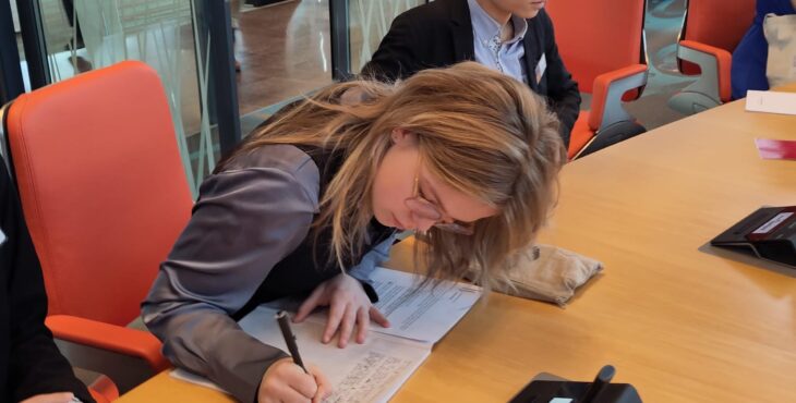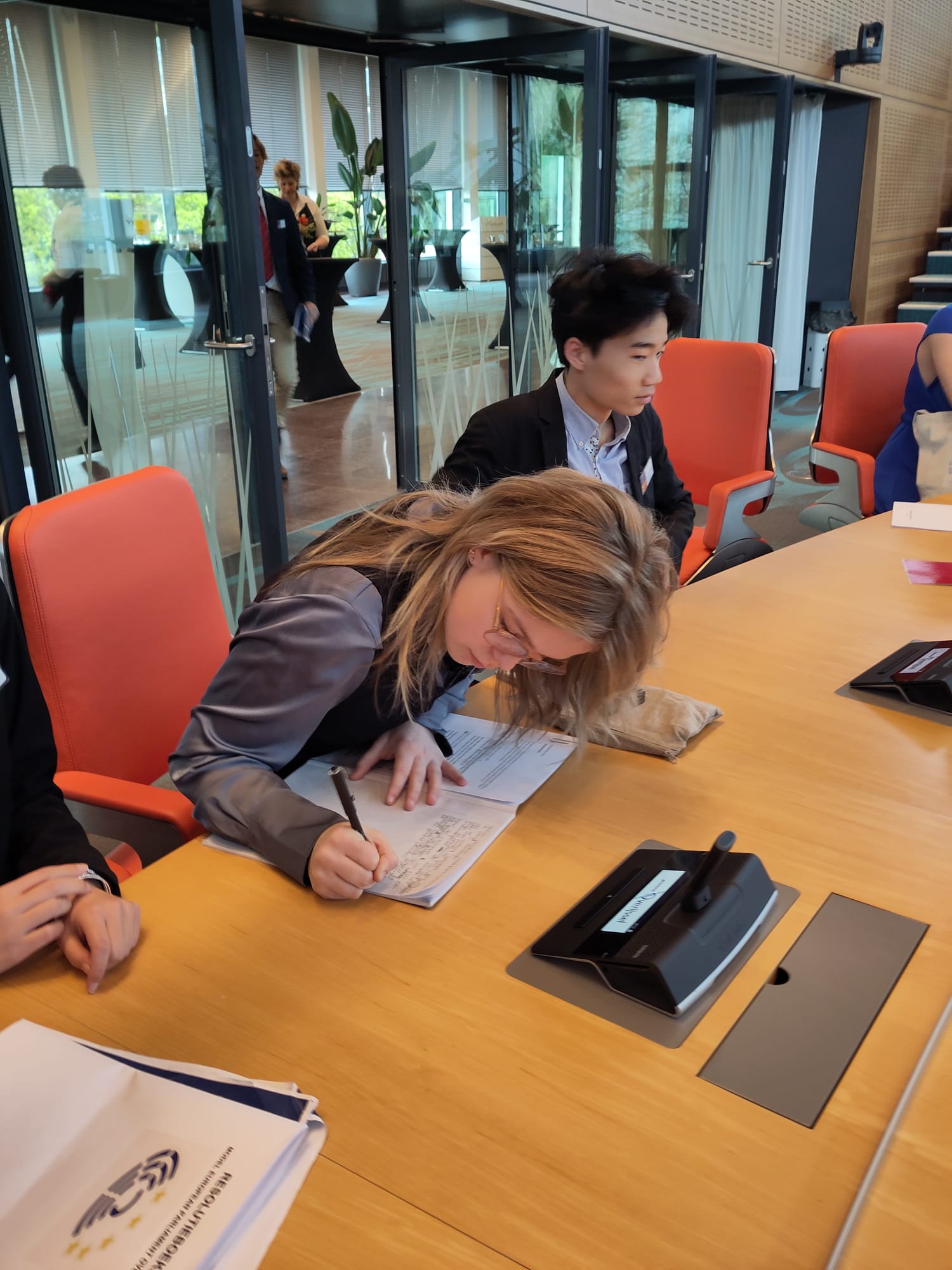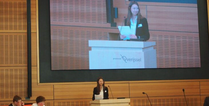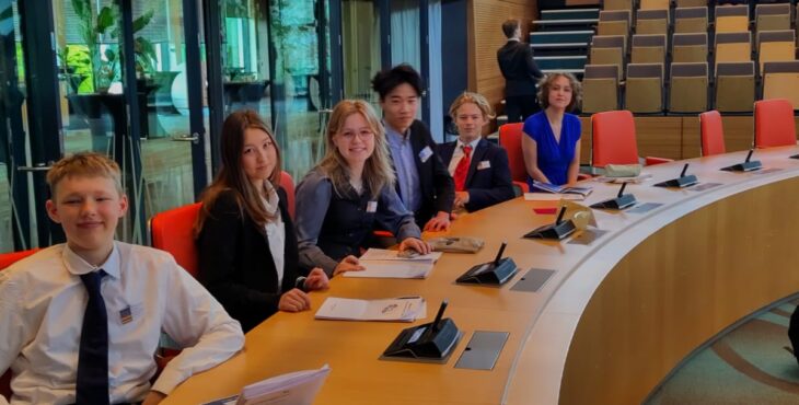 Hard werken voor Thirse, Gijs, Olivia, Lior, Baldr, Meili en Nicholas uit klas 4! Zij deden mee met het Model European Parliament Overijssel, gehouden in het Provinciehuis. Voor allerlei Europese vraagstukken moest een oplossing gevonden worden.