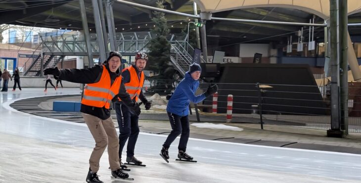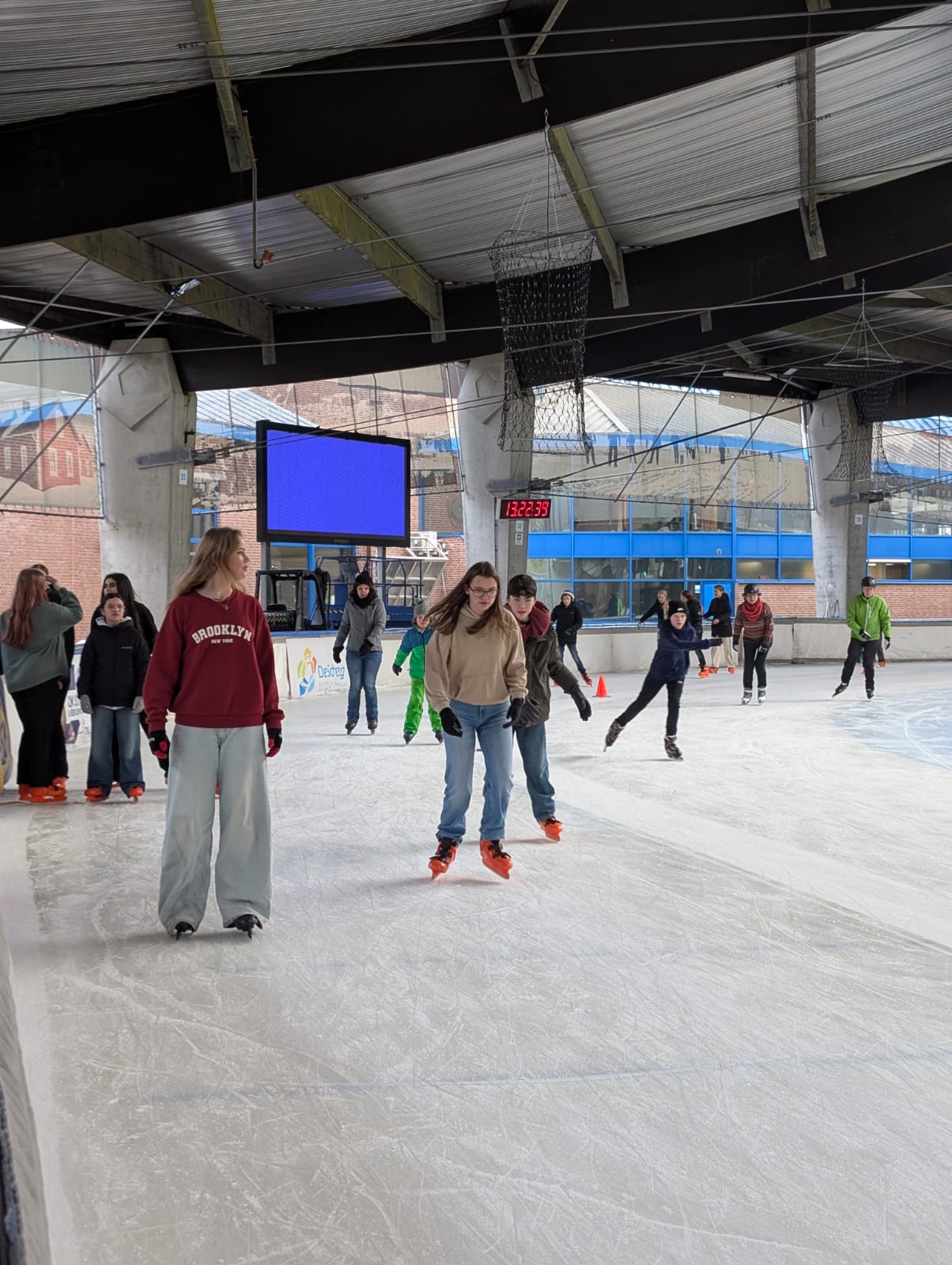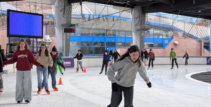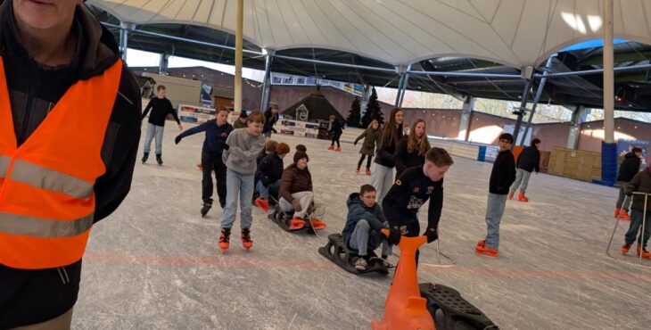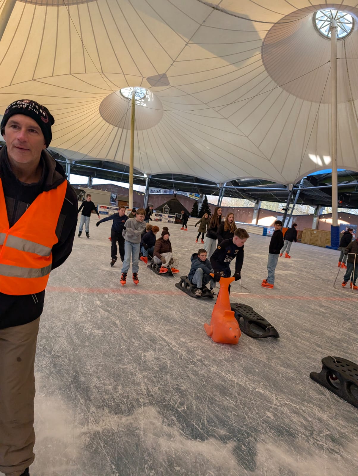 De leerlingen konden kiezen tussen schaatsen of zwemmen. Extra mooi: meneer Van Elsdingen (oud‑collega) was aanwezig op zijn eigen sportdag. Mevrouw Koops gaf schaatsles aan de leerlingen en meneer Bernardus – die beweerde niet te kunnen schaatsen – deed allen versteld staan van een indrukwekkend staaltje schaatstechniek. Kortom, een perfecte én sportieve afsluiting van de toetsweek!