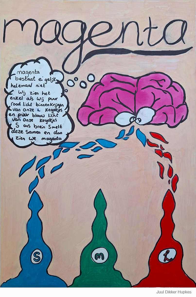 Wat is het mysterie van de blauwe bes? Is zwart plastic te recyclen met licht? Wat zijn de voordelen van een vliegtuigje met vogelpootjes? Waar is het valsspelen in Mario goed voor? Is kleding in de toekomst oplosbaar in water? Allemaal vragen waar de leerlingen van klas 2 tijdens de lessen Kunst een infographic over maakten.
