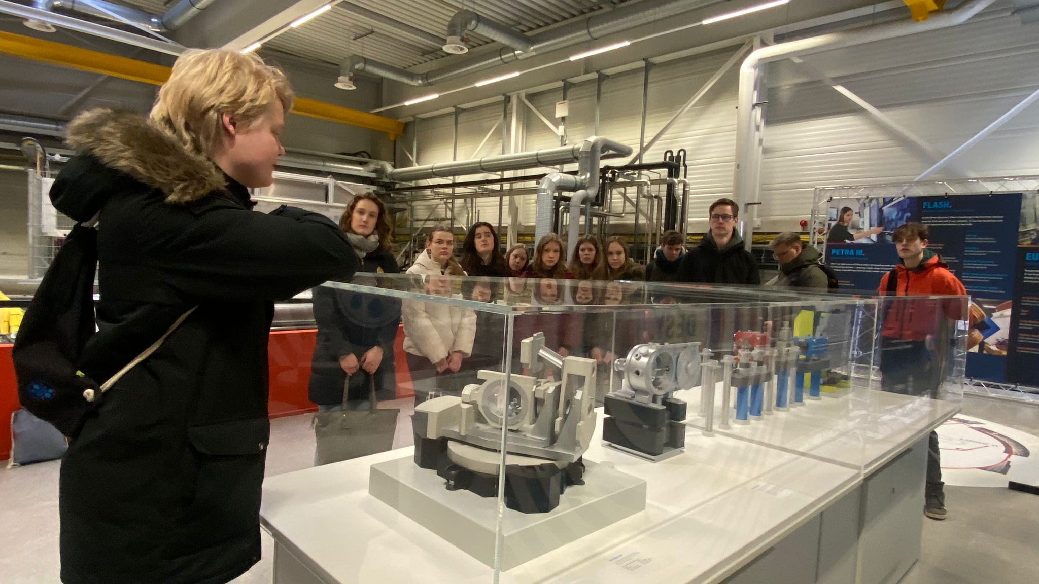 Wij brachten eerst een bezoek aan Desy in Hamburg, waar de nieuwste deeltjesversneller zorgt voor hoog energetische straling. De zogenaamde XFEL(X-ray Free Electron Laser) van DESY produceert ultrakorte stralingspulsen die fundamenteel zijn voor het “filmen” van extra snelle processen op atomaire schaal. Zo heeft men voor het eerst het Coronavirus in kaart kunnen brengen.