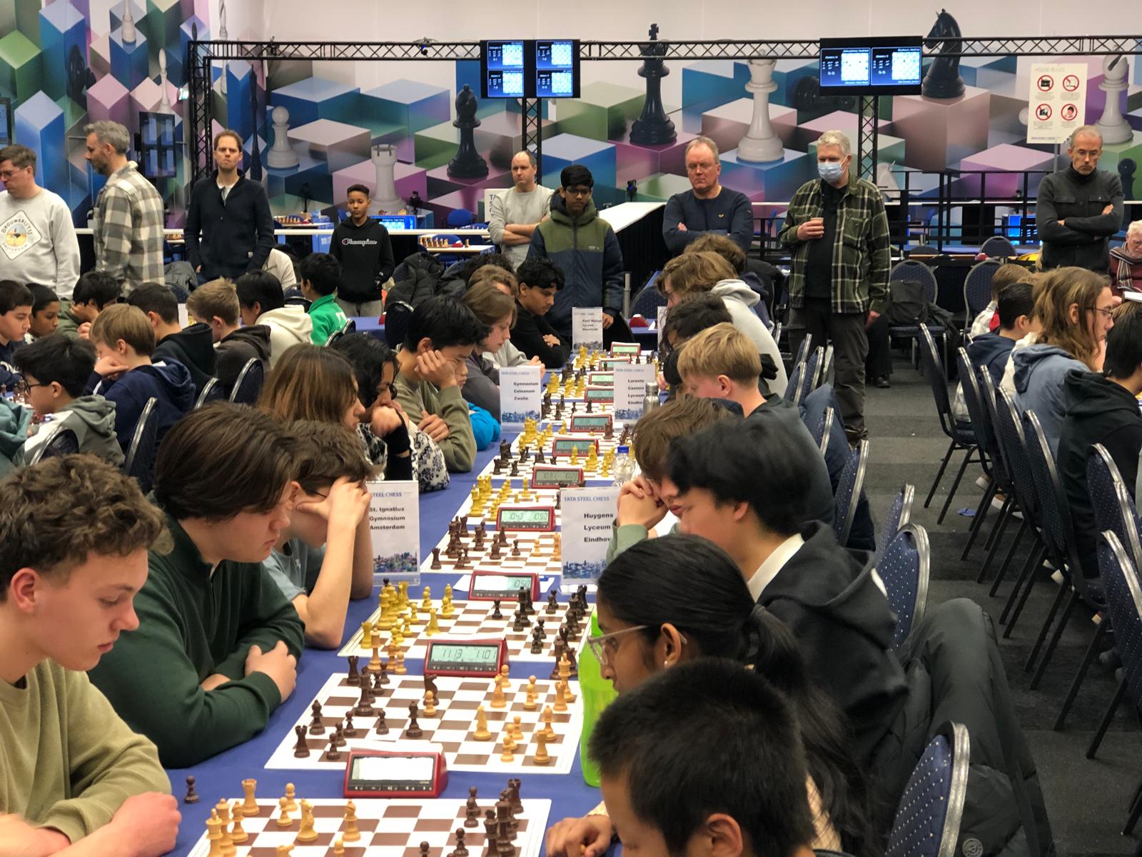 Alex, Nicholas, Suraj, Rana en Ewan hadden zich via de online kwalificaties in december voor de finale geplaatst. Vorig jaar waren we vanuit het niets tweede geworden bij het kampioenschap van de gymnasia, nu konden we onze krachten meten in een nog sterker toernooi. Alle scholen in Nederland kunnen namelijk aan de kwalificaties voor het Schoolschaakkampioenschap meedoen; de beste zes scholen plaatsten zich voor de finale. We deden mee in categorie 1, de hoogste categorie voor alle jaarlagen van de scholen.