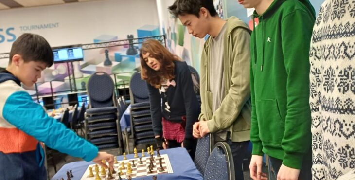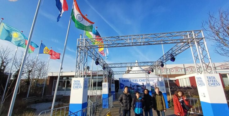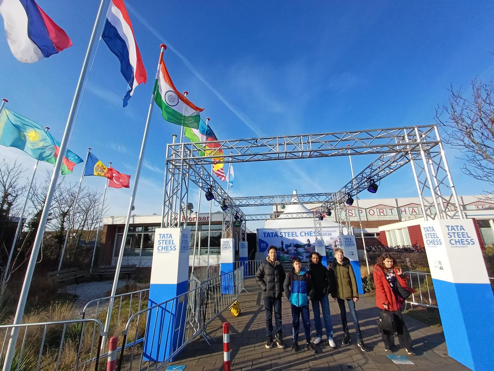 Wijk aan Zee, het Tata Chess Tournament, wie weet zouden we nog een paar van onze favoriete grootmeesters tegenkomen. Helaas bleek de finale tijdens een rustdag van het toernooi gehouden te worden en waren de grootmeesters in geen velden of wegen te bekennen. De reis naar Wijk aan Zee met het OV is al een avontuur op zich, met de nodige overstappen en ten slotte vanuit Beverwijk een overvolle bus met wel heel veel andere schakers. In Wijk aan Zee was de ontvangst nogal kil, we mochten de toernooizaal nog niet in en werden naar een klein zaaltje gestuurd waar geen enkel schaakbord klaarstond. Gelukkig konden we een halfuur voor tijd toch in de speelzaal terecht om even de spanning voor het toernooi van ons af te spelen in een simultaan tegen Alex. Toen ook kwam Rana goed los. Ze had op de heenweg helemaal niets van zich laten horen, maar ze raakte enthousiast, toen ze dan eindelijk kon gaan schaken. Het zou de voorbode zijn van haar prestaties die middag.