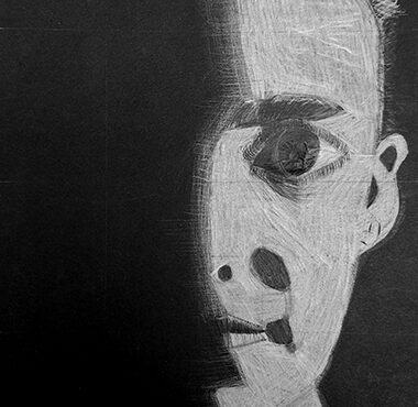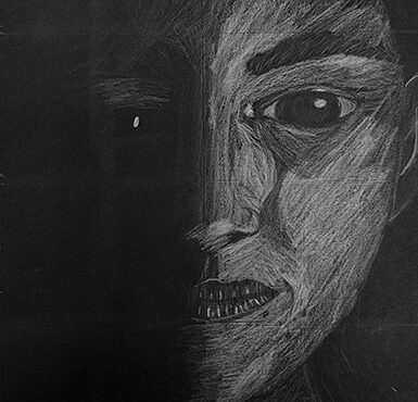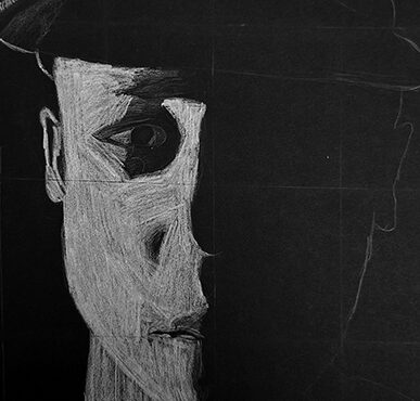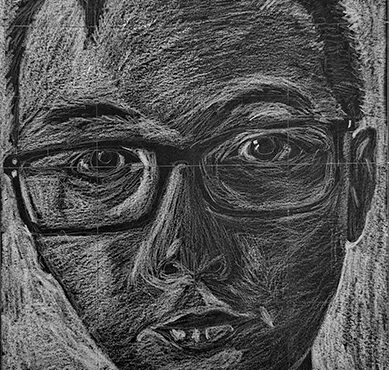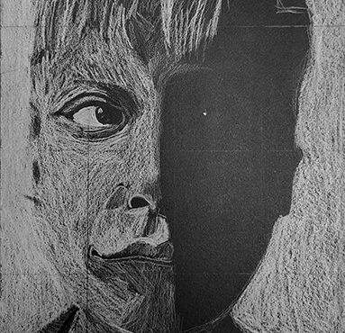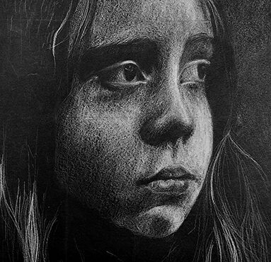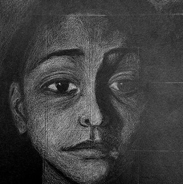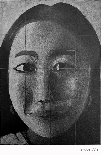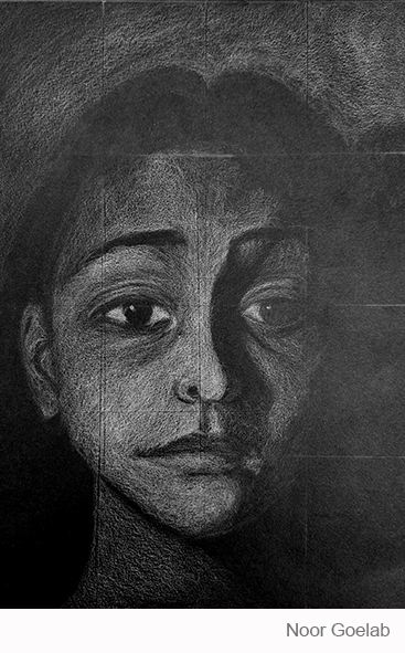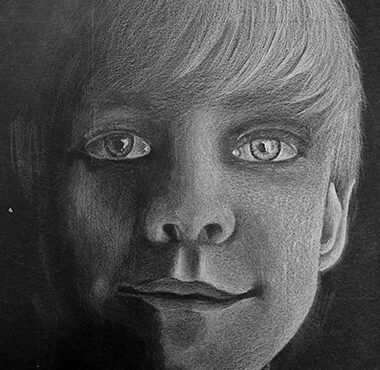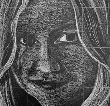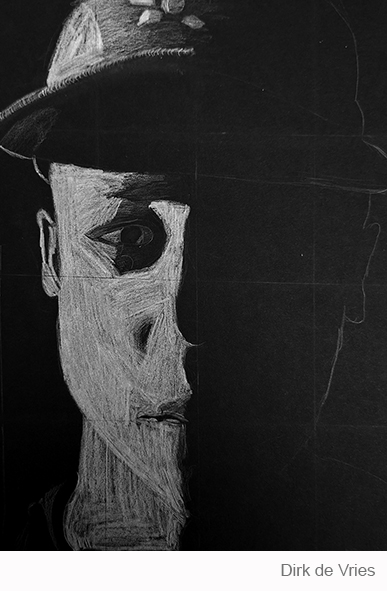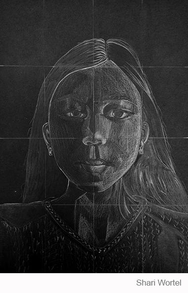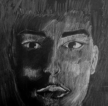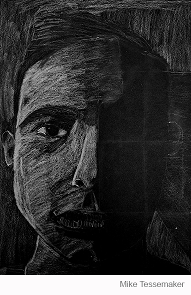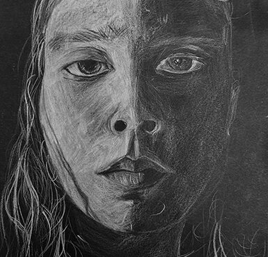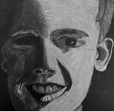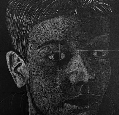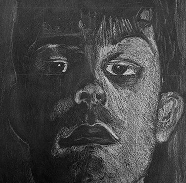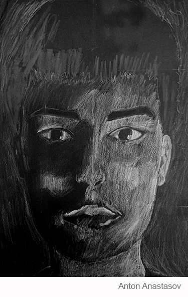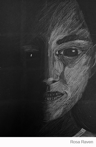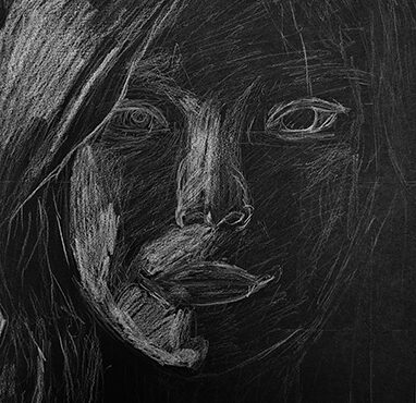 Aan de hand van een foto van zichzelf hebben de leerlingen een zelfportret gemaakt met wit potlood op zwart papier. Het was dus niet een kwestie van ogen, neuzen en een mond tekenen, maar vooral van goed kijken wat je werkelijk ziet: zo objectief mogelijk. En dan was één oog soms al genoeg voor de suggestie van twee.