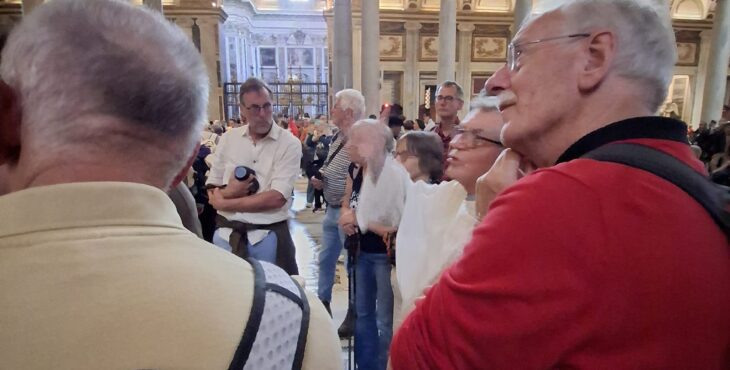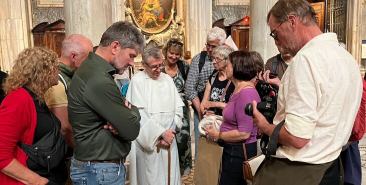 Een bezoek aan Rome is per definitie altijd ook een kerkentocht. Dit keer ging de aandacht speciaal uit naar de vroegchristelijke periode (Catacomben van Priscilla en het complex Santa Constanza en Sant’ Agnese fuori le Mura) en de pauselijke aartsbasilieken Sint-Jan van Lateranen en Santa Maria Maggiore. In laatstgenoemde kerk verzorgde pater Tiemen Brouwer O.P. de rondleiding. Pater Brouwer woonde ooit in het Zwolse Dominicanenklooster. De middeleeuwen worden in Rome vaak overgeslagen. Volstrekt ten onrechte, zoals bleek tijdens de bezichtiging van de Aula Gotica in het klooster van de Santi Quattro Coronati. De pas rond 1995 herontdekte schilderingen verbeelden de wetenschappelijke kennis van rond 1250.
