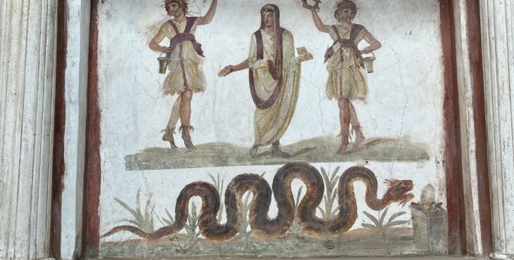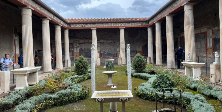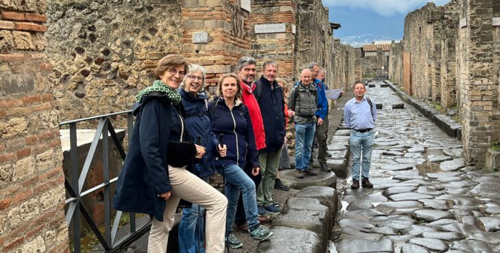 De fantastische Italiaanse hogesnelheidslijn maakte een dagexcursie naar Pompeï tot een ontspannen reis. In Pompeï kregen we een goed beeld van het leven in een antieke Romeinse stad in de provincie met haar theaters, badhuizen, heiligdommen, fora, pakhuizen, werkplaatsen, thermopolia (een soort fastfoodzaken), herbergen en woonhuizen in alle soorten en maten.