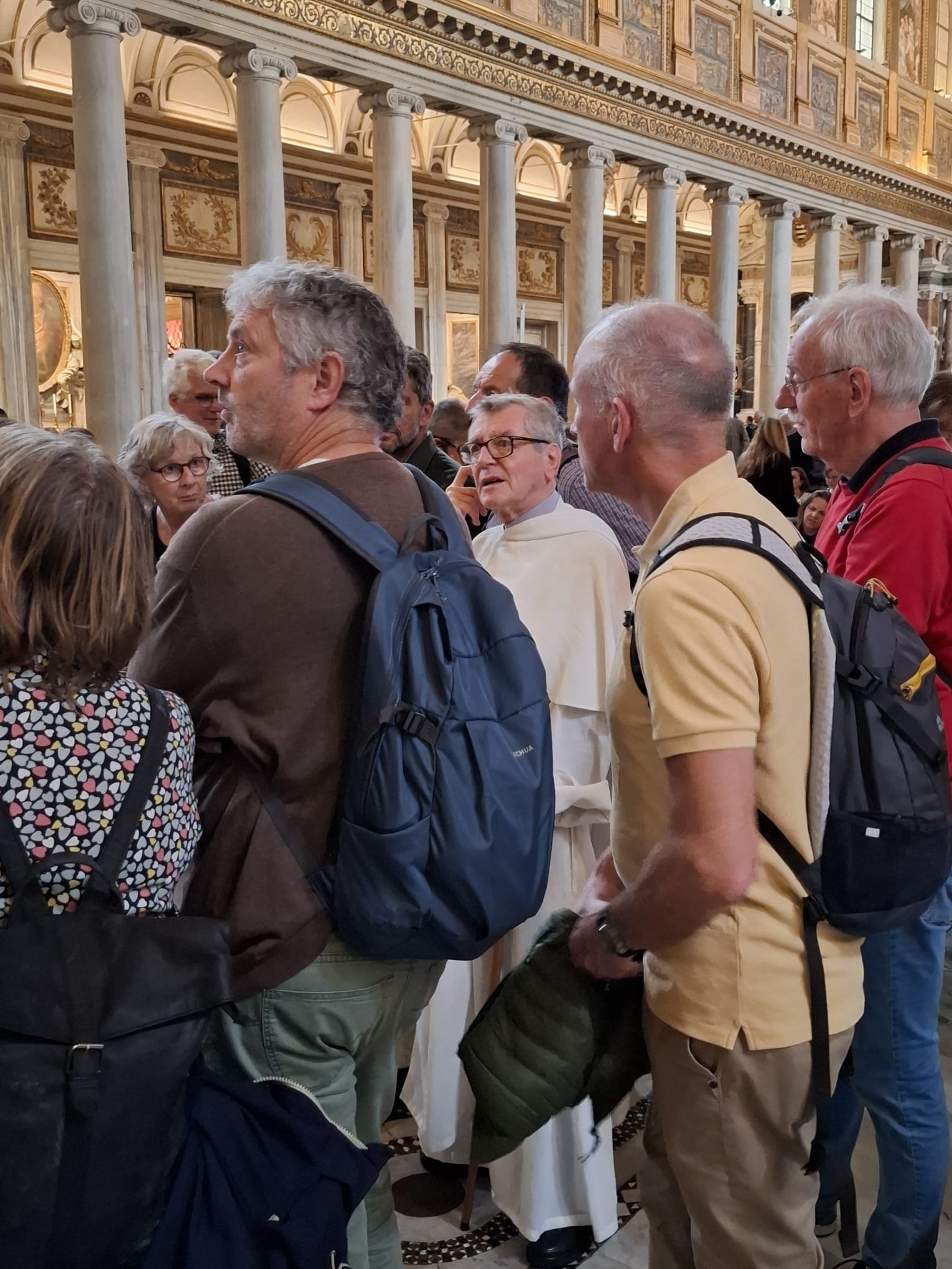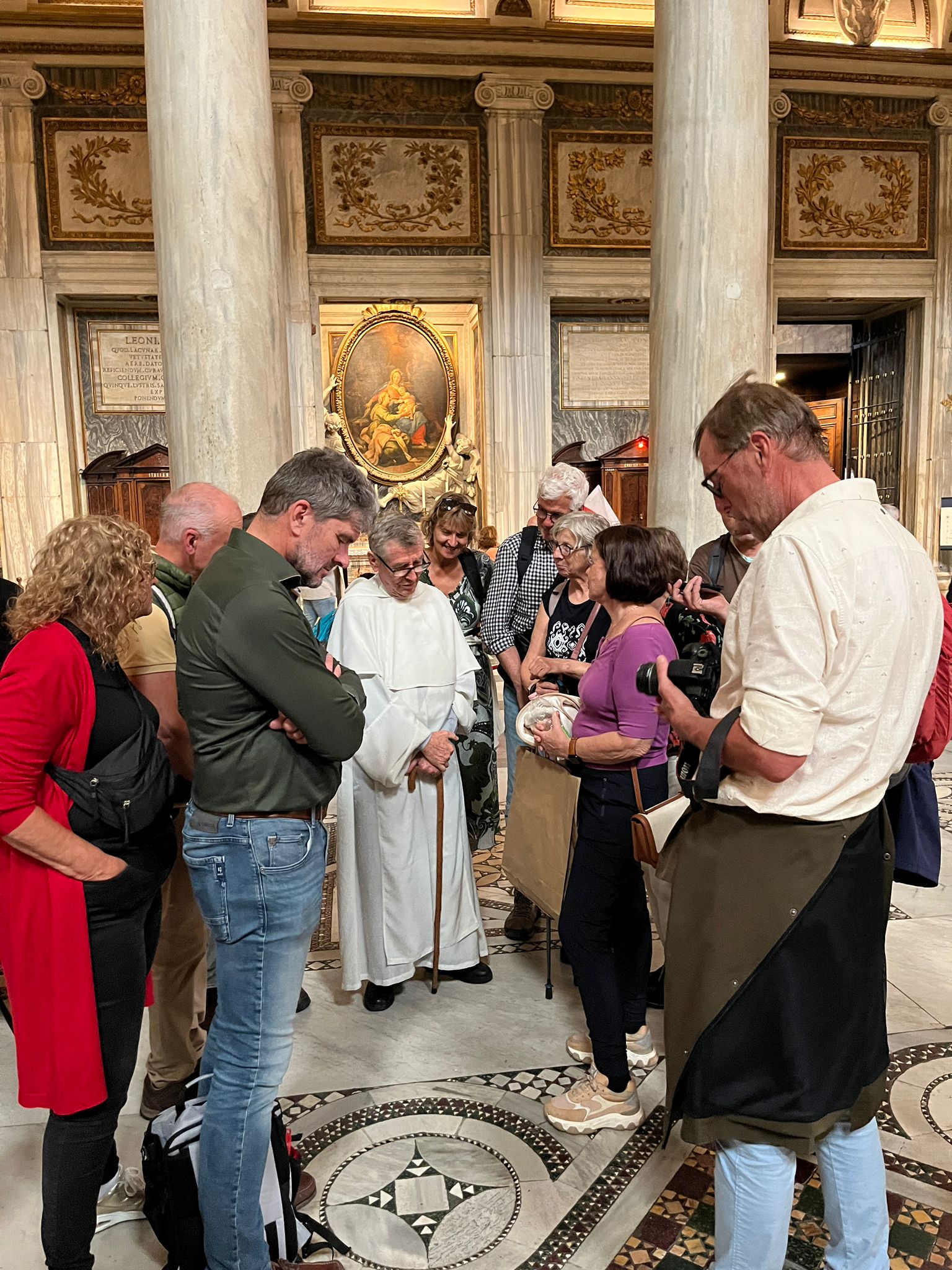 Een bezoek aan Rome is per definitie altijd ook een kerkentocht. Dit keer ging de aandacht speciaal uit naar de vroegchristelijke periode (Catacomben van Priscilla en het complex Santa Constanza en Sant’ Agnese fuori le Mura) en de pauselijke aartsbasilieken Sint-Jan van Lateranen en Santa Maria Maggiore. In laatstgenoemde kerk verzorgde pater Tiemen Brouwer O.P. de rondleiding. Pater Brouwer woonde ooit in het Zwolse Dominicanenklooster. De middeleeuwen worden in Rome vaak overgeslagen. Volstrekt ten onrechte, zoals bleek tijdens de bezichtiging van de Aula Gotica in het klooster van de Santi Quattro Coronati. De pas rond 1995 herontdekte schilderingen verbeelden de wetenschappelijke kennis van rond 1250.
