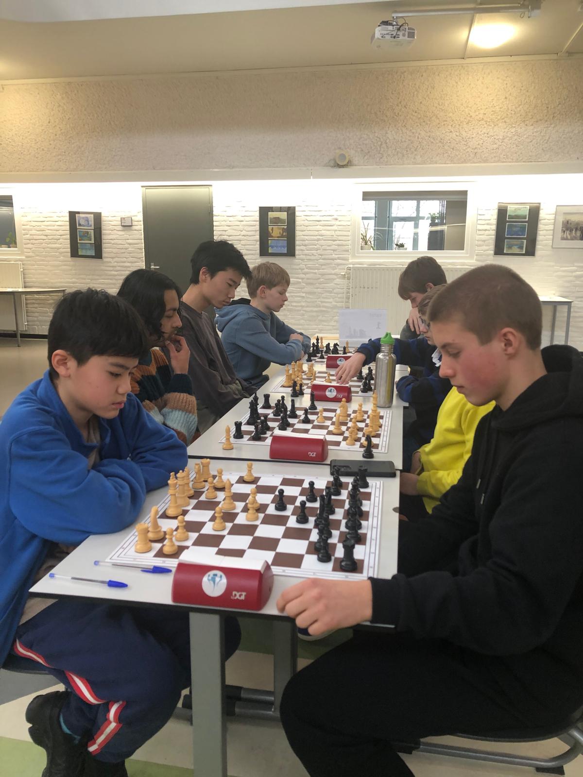Vorig jaar eindigde deze wedstrijd in een gelijkspel, waardoor CGU net aan kampioen kon worden. En ook deze keer eindigde de onderlinge wedstrijd tussen de favorieten in een gelijkspel. De broertjes Xu wonnen hun partijen, maar helaas konden Suraj en Rana net niet het laatste halfje winnen. Enigszins teleurgesteld waren de schakers in de volgende wedstrijd tegen het Ignatius uit Amsterdam er niet helemaal bij. De twee vorige wedstrijden tegen deze school waren overtuigend gewonnen, maar nu lukte het niet, een 1,5-2,5 nederlaag.