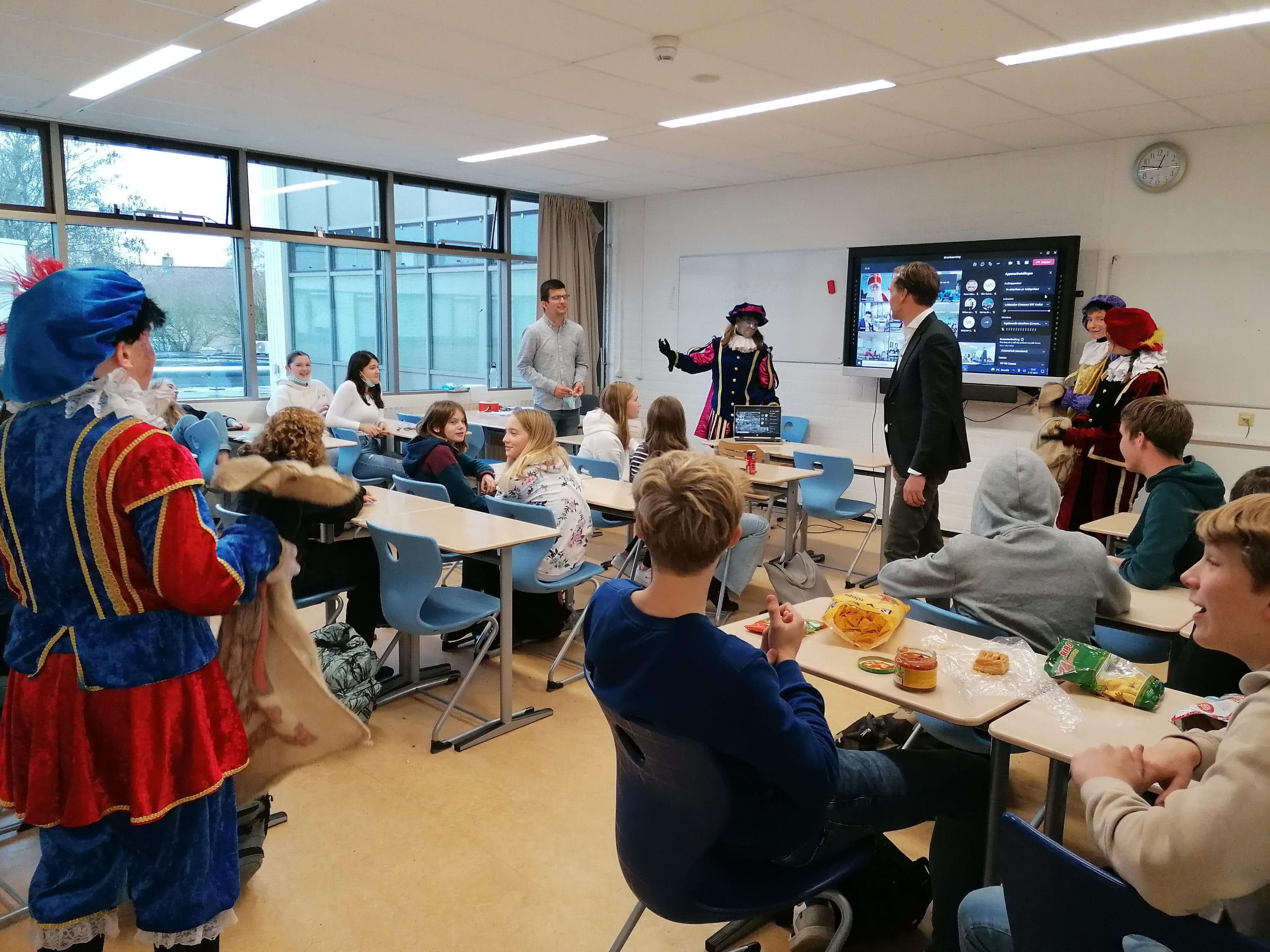 Het heerlijk avondje is gekomen! Sinterklaas is gelukkig het Celeanum niet vergeten. Vanwege corona en zijn vergevorderde leeftijd was het niet verstandig dat hijzelf langskwam en daarom sprak hij alle lieve en stoute kindertjes (en docenten) via Teams toe. De Pieten kwamen gelukkig wel langs en strooiden (voorverpakte) snoepjes in alle klassen.